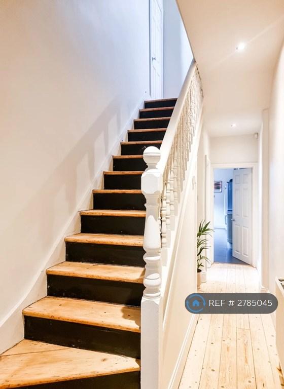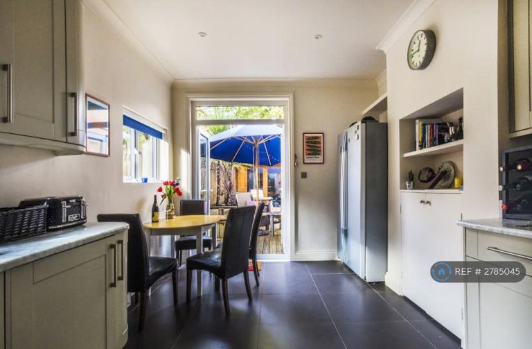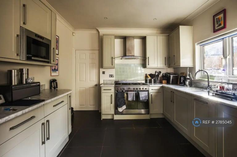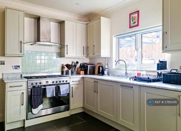 This is a large end-of-terrace house with a fully equipped kitchen and a generous back garden.