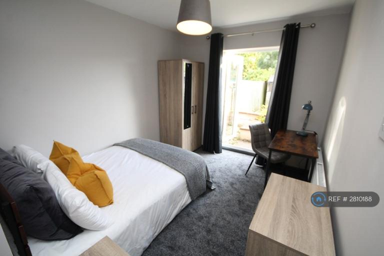 Room 2 is a double bed on the Ground floor at back of the house. The room has been newly redecorated and brand-new carpet and furniture. The room has a brand new wardrobe, bed, bedside table, chest of drawers and a desk and chair. Door to garden. (pictures are of another room in the house with the same style furniture) £695 per month
