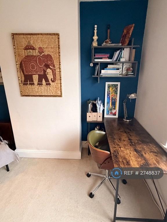 First floor: modern bathroom with bath and separate rainfall shower; cosy double bedroom; separate office/study room (ideal for WFH).