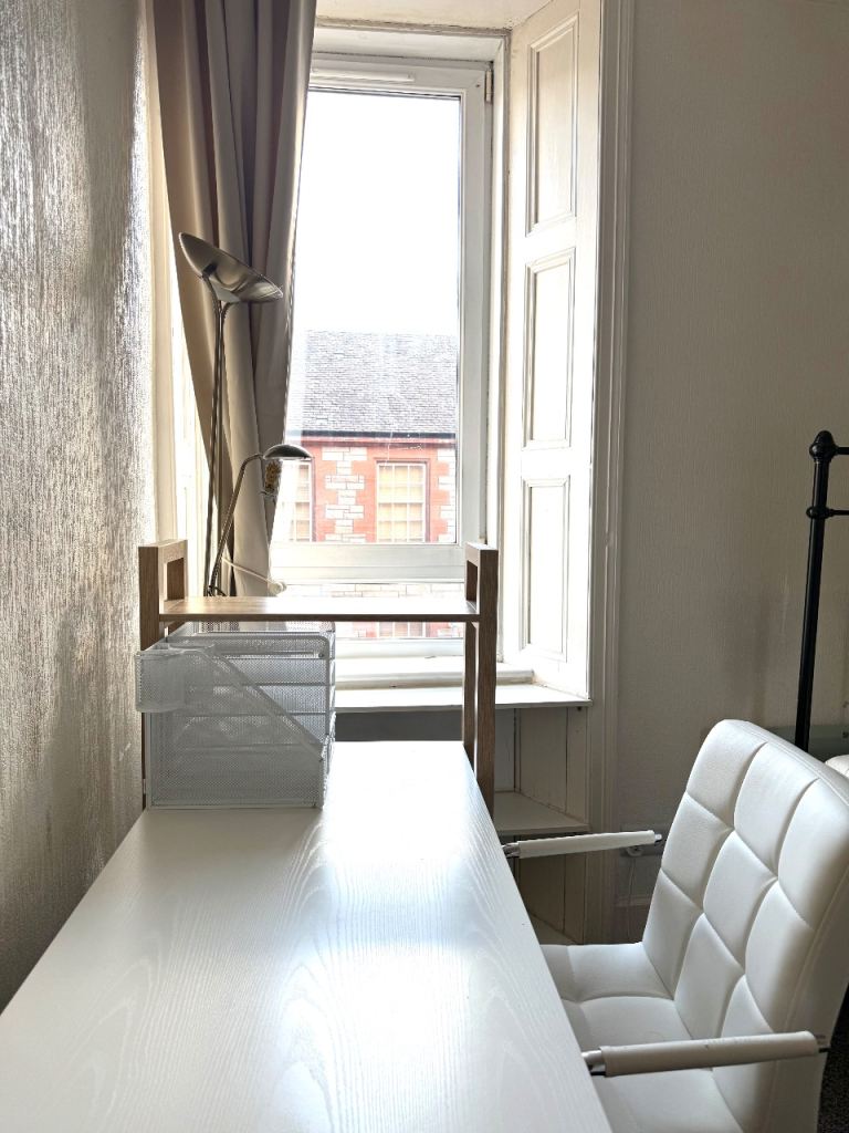A fantastic, central one bedroom plus box room flat on the 1st floor of a refurbished tenement . Freshly decorated.