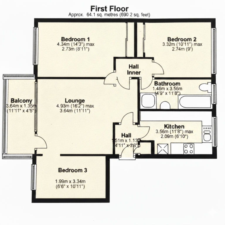 Whilst it has three bedrooms, please note the third room is more suited to a WFH office/ dining room or a child's room.
