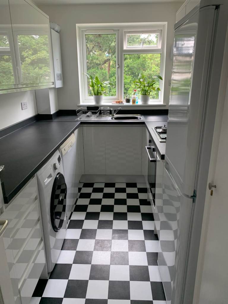 *Modern kitchen with gas hob, electric oven, washer/drier and dishwasher.