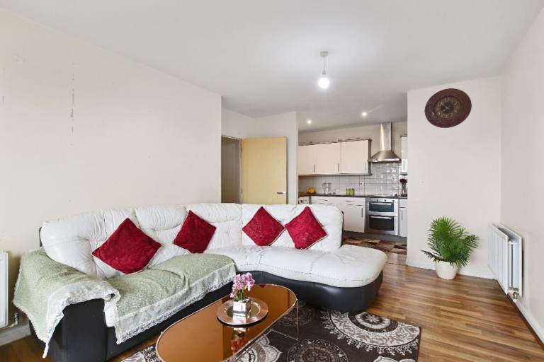 A modern two bedroom, two bathroom apartment (one en-suite) located in Bridge Court. The property features a spacious reception room with access to a private balcony, offering views of the surrounding area. The kitchen is fitted with appliances and integrated storage. Additional benefits include a secure system and double glazing throughout.