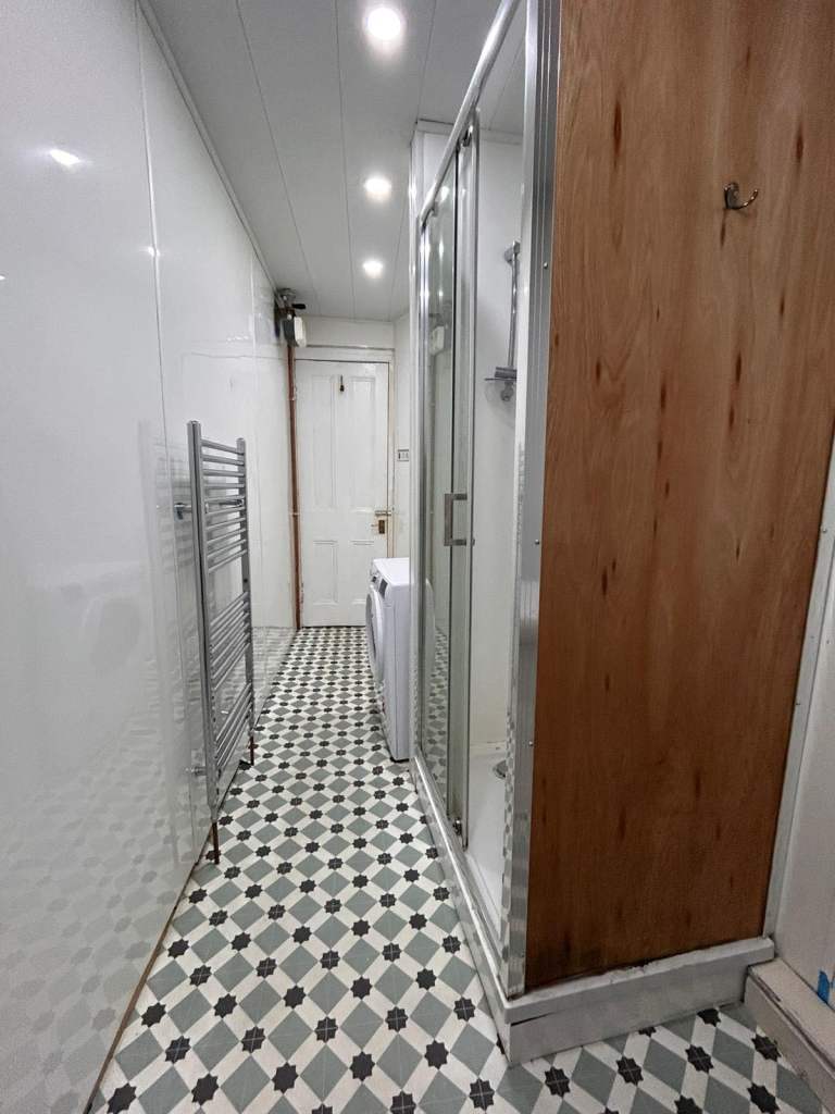 The bathroom is clean and contemporary, fitted with a shower.