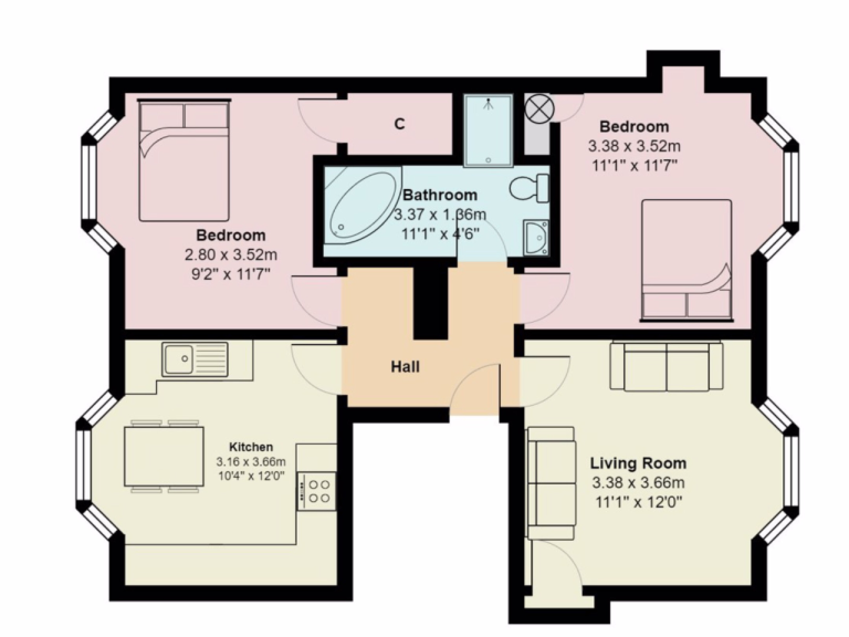 Furnished first floor flat, 2 double bed, 1 bath & shower room,
