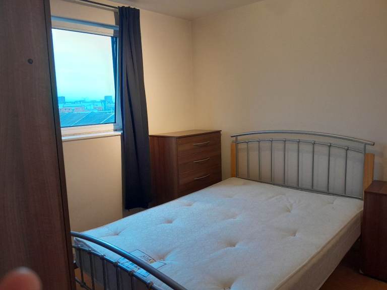 2 bedroom flat available from 12th January. 2 bathrooms, 1 ensuite. Open plan kitchen and living room. Balcony with river views and an underground parking space.