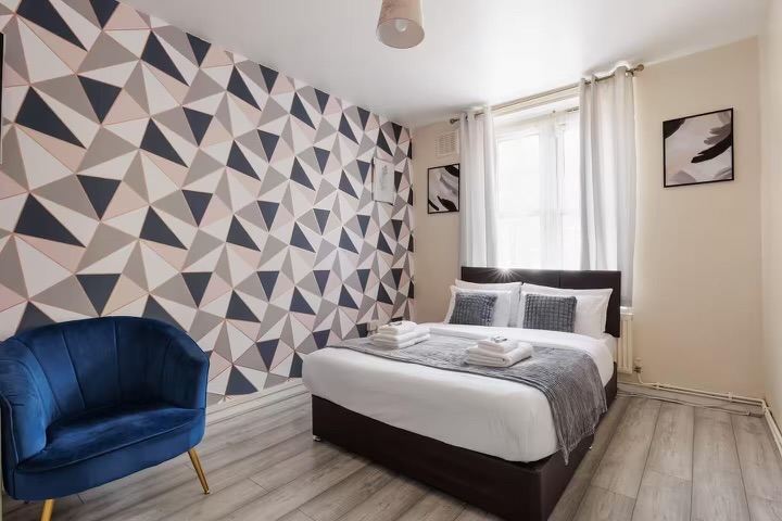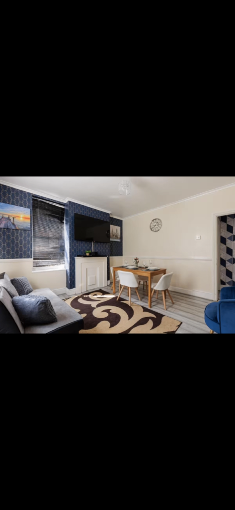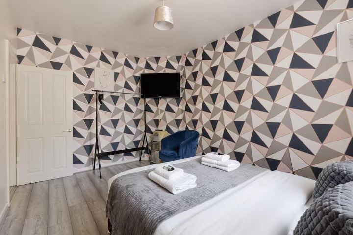 The property features two well-sized bedrooms, a spacious living area filled with natural light, and a fully equipped kitchen ideal for both short and longer stays. Thoughtful décor and vibrant touches throughout give the home a unique and welcoming feel.