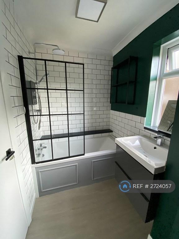 The bathroom has been fully renovated and features a brand-new bath, electric shower, sink, toilet, and built-in storage.