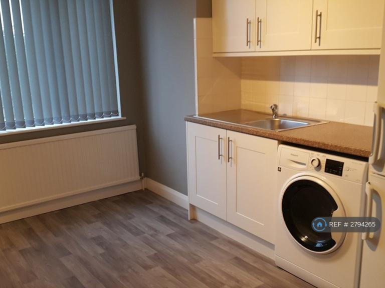 Having a range of white base and wall units with brown laminate worktops and tiled splashbacks. Appliances include an electric oven hob and extractor, brand new washing machine and fridge/freezer. There is also a large built in cupboard and the gas central heating boiler, vinyl flooring and a uPVC double glazed window.