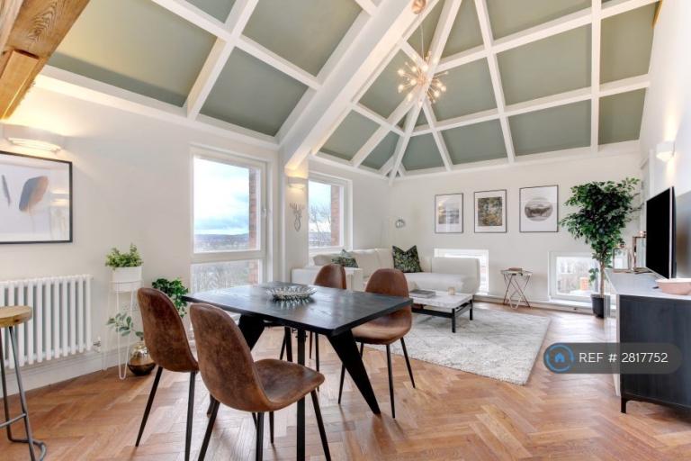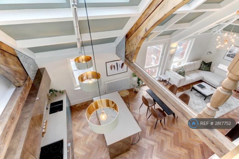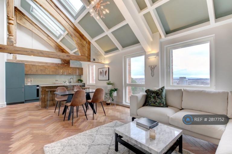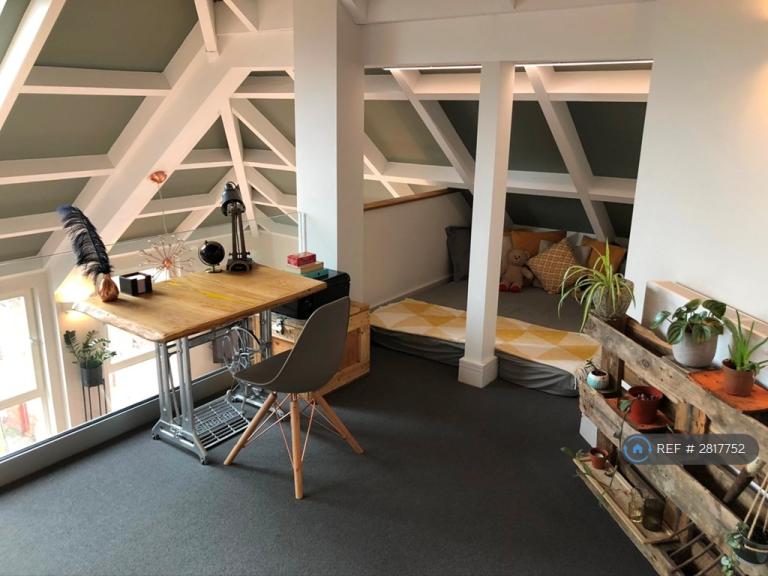 It is a modern 2 bedroom / 2 bathroom fully furnished penthouse that comes equipped with fridgefreezer, dishwasher, washer dryer, wine fridge, kettle toaster, curved smart TV etc. The master bedroom has an ensuite bathroom with a walk in rain shower. There is also a second bathroom with a bath and shower. The flat is beamy and has double height ceilings in a recently converted old bookbinding factory. The space is very light and airy thanks to full height windows, glass panelling and 5 remote / phone controlled veluxes. There is over 1000 sqft of space with a mezzanine that is perfectly set up for working from home and also has a snug for chilling out. Ideally located with the city centre and Gloucester Road less than a 10 minute walk and Clifton a 15 minute walk. The flat has great panoramic views across Bristol and you can see all the way to Bath. There is a gym and 6 charming little pubs all within a 2 minute walk. Permit parking is available on the street outside. The building has a secure bikeshed too.