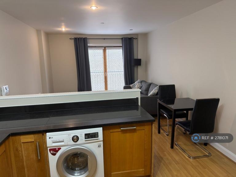The apartment is perfect for a couple or friends sharing, and consists of a large open plan living room, diner and kitchen, with bright airy French doors to a Juliette balcony with great 4th floor views, two comfortable John Lewis sofa's, dining table and chairs, TV unit, fully fitted kitchen with integrated oven, hob, microwave, dishwasher, toaster, fridge freezer and washing machine/dryer and granite countertops.