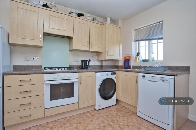 2 Bedroom, 2 bathroom (one en-suite) flat, with open plan kitchen/diner/lounge. Opposite green area. New stainless steel oven, hob, extractor, splashback, etc. fitted (not shown in pictures). Available from 1 February 2026. There is a very good washing machine (grey/silver A rating) and a dishwasher fitted (grey/silver A rating) 8/9 months ago that is also in the flat. No smokers. Preferably working professionals.