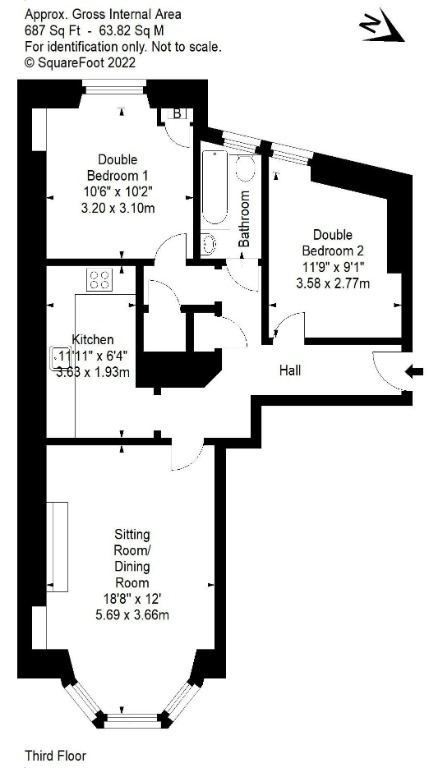 Accommodation comprises entrance hall, spacious living room, kitchen equipped with dishwasher, washing machine, oven, gas hob and fridge freezer, two double bedrooms and bathroom.