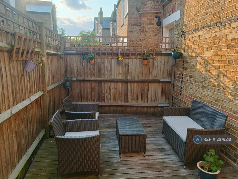 Bright flat with decked garden in a quiet residential street, just 10 minutes walk away from Clapham South tube and 15 minutes walk from Balham station. Wandsworth council tax band D.