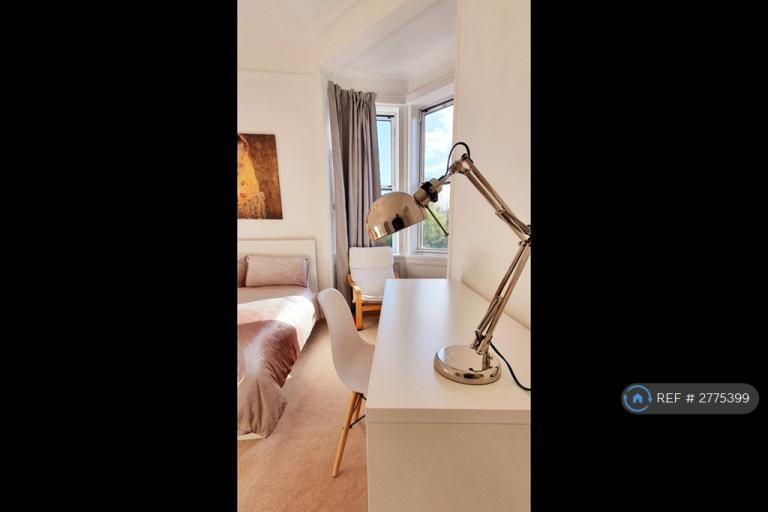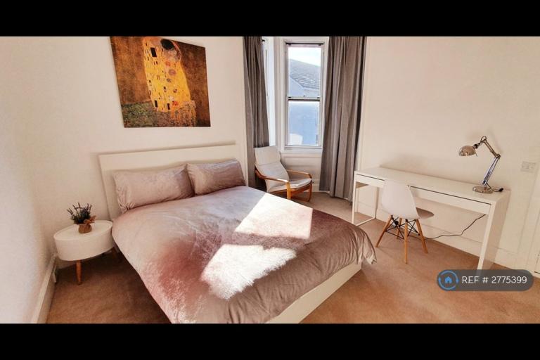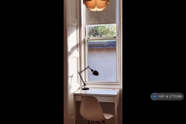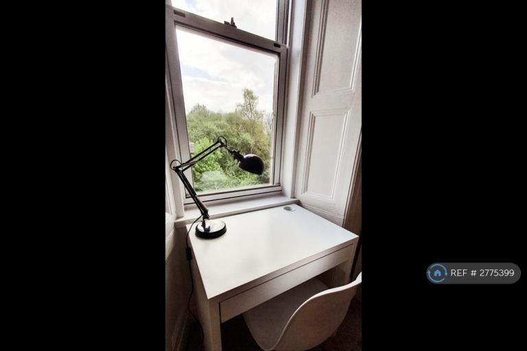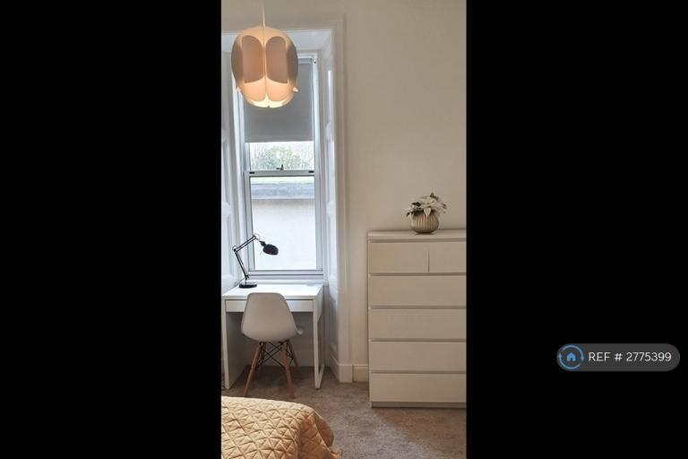 Bedroom 1 includes a double bed with bedside table, lamp, desk, chest of drawers and clothes rail. It also boasts a relaxing chair and an Edinburgh press. The desk can be swopt for a wardrobe if required. The bay window benefits from black out curtains.