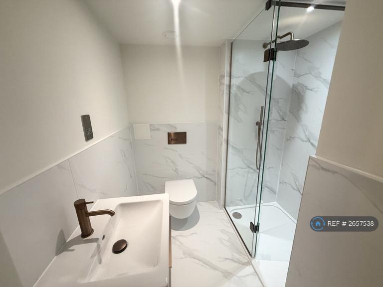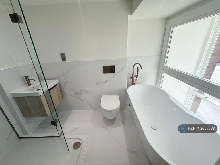 This apartment offers, high ceilings, two double bedrooms, both with an en suite bathroom, one including large free standing bath.