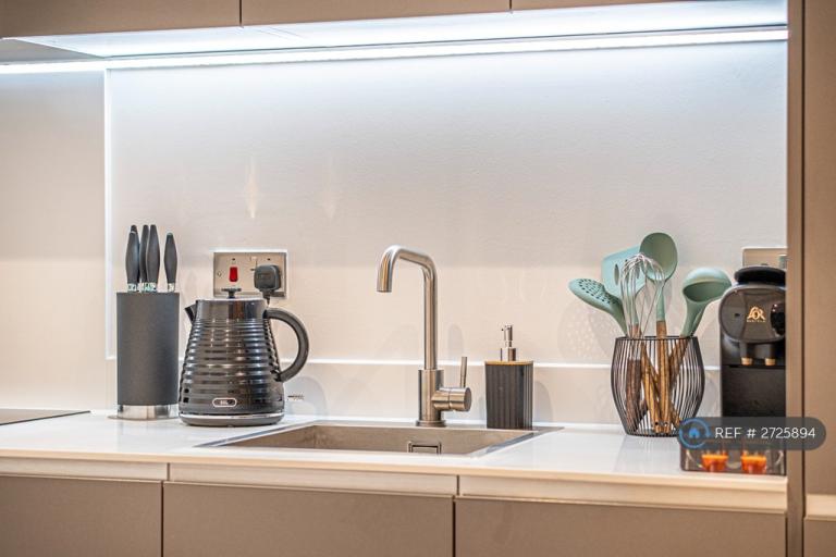 Modern fitted kitchen with integral white goods, perfect for long stays including it's own washing machine