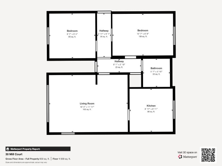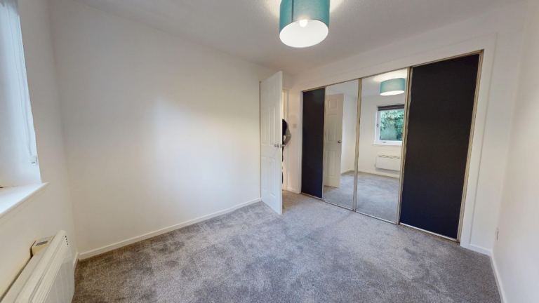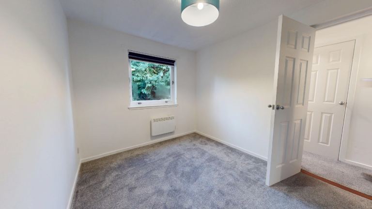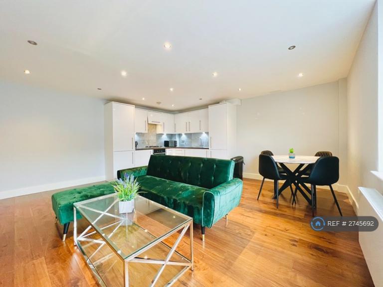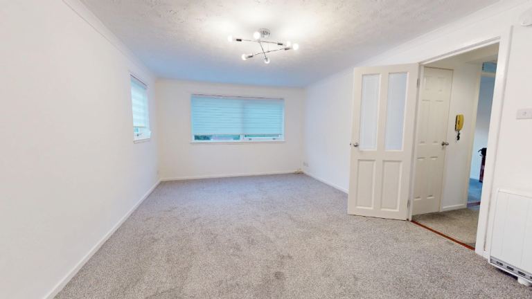 30 Mill Court in Aberdeen offers a practical and contemporary living space. The property is unfurnished, features two bedrooms, including a primary bedroom of 108 sq. ft., one bathroom, and one floor of living area. The modern kitchen is a highlight, boasting sleek white cabinetry, integrated appliances, and a functional L-shaped layout. Large windows with blinds allow natural light to flood the space.