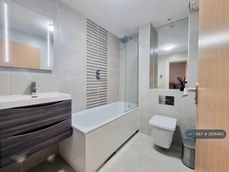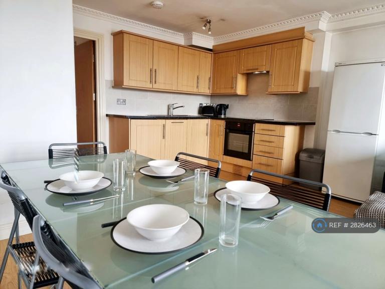 The apartment centres around a generous open-plan kitchen/reception with wood flooring and space for a proper dining set, making it ideal for both everyday living and entertaining. The kitchen is fitted with integrated appliances, including a dishwasher and washer dryer. Both bedrooms are well proportioned with good storage, and the apartment is completed by a modern family bathroom.
