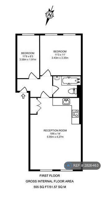 2 bedrooms 1 bathroom 555 sq ft Clapham Junction