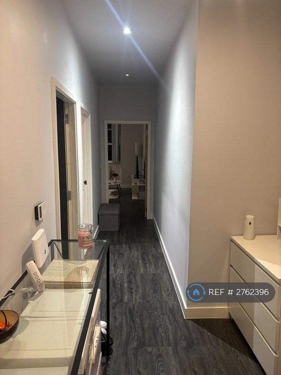 This apartment is a calm, comfortable retreat in the city, combining character features with modern design. The bathroom is finished to a high standard with a three-piece white porcelain suite, a shower over bath, and a stylish vanity unit with a large wall-mounted mirror. The walls and floors are fully tiled, and the home benefits from electric heating plus a chrome-effect heated towel rail in the bathroom.