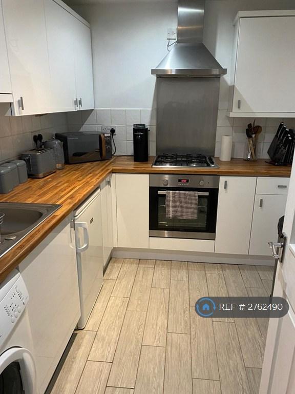 Modern kitchen includes a new washer / drier, dishwasher and fridge / freezer.