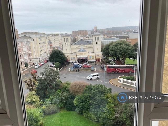 Eastbourne near the Devonshire theatre. A two bed top floor flat available for rent from mid-January. Unfurnished but with carpets and blinds. Comfortable large rooms, views of the sea and the Devonshire Park Theatre. 20 ft lounge. Heating and hot water are included.