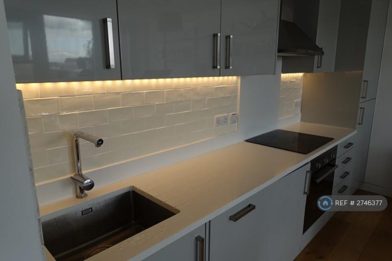 Living Room and Kitchen (4.0m x 4.2m) - Large L-Shaped Sofa overlooking the large roof terrace which has views of Victoria Road and the rest of Romford. Kitchen is fully equipped with microwave and all inbuilt appliances. Also has a dining table and dining chairs.