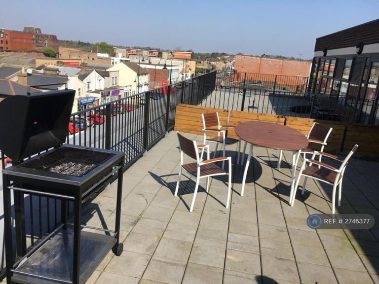 For let here is a beautifully presented 2 bedroom apartment on the top floor of a relatively new set of apartments. It benefits from an en-suite bathroom to the master bedroom and a very large outdoor roof terrace. It is located only a 150m away from Romford station and also only a short walk from Queens Hospital. It has a parking space included which is to a secure gated car park.