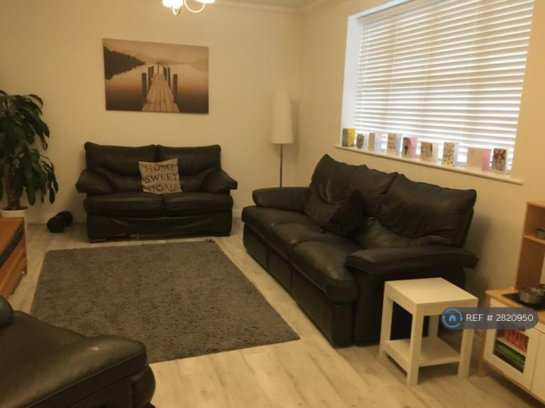 The property is accessed through its own entrance. Off the large hallway towards the back of the property it has two equal sized double bedrooms, the master bedroom also benefits from an ensuite. There is a nice clean family bathroom with an over the bath shower. A large living room and a separate kitchen off the hallway with a breakfast area, gas hob and integrated appliances (dishwasher, electric fan oven, washer/dryer). The porch area is a good size with ample storage space. It comprises a shelf with coat rack underneath and separate hidden storage area which can be used for shoes.