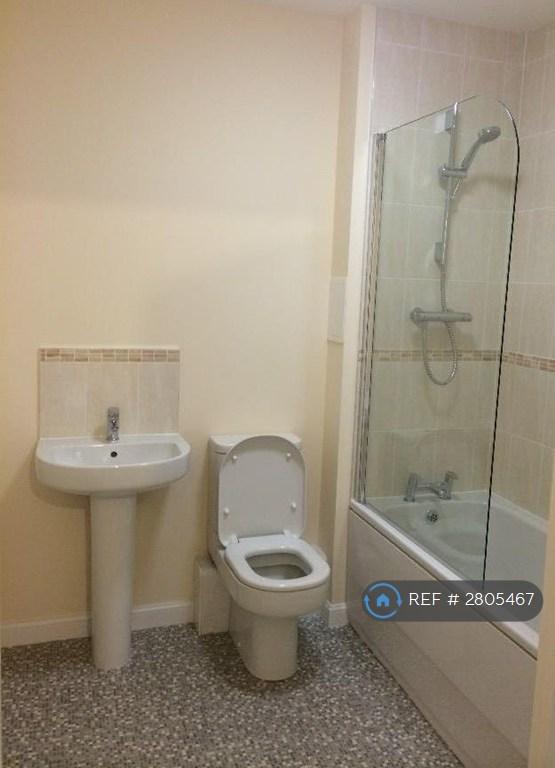 FAMILY BATHROOM with 3 piece white suite and overhead mains shower.