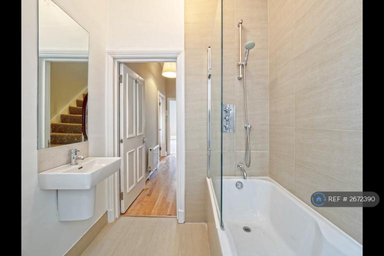 Two large double bedrooms and a bright study /home office / nursery. Bath and shower with a second separate downstairs guest WC.