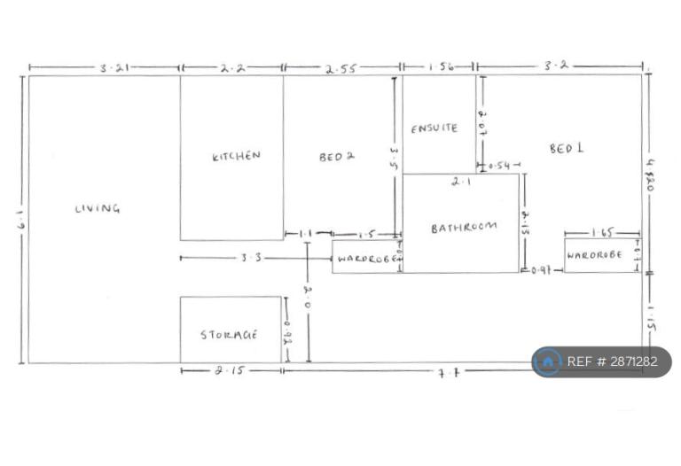 The apartment has a 2 double bedrooms, one with ensuite, a separate bathroom, and an open-plan living and kitchen area.