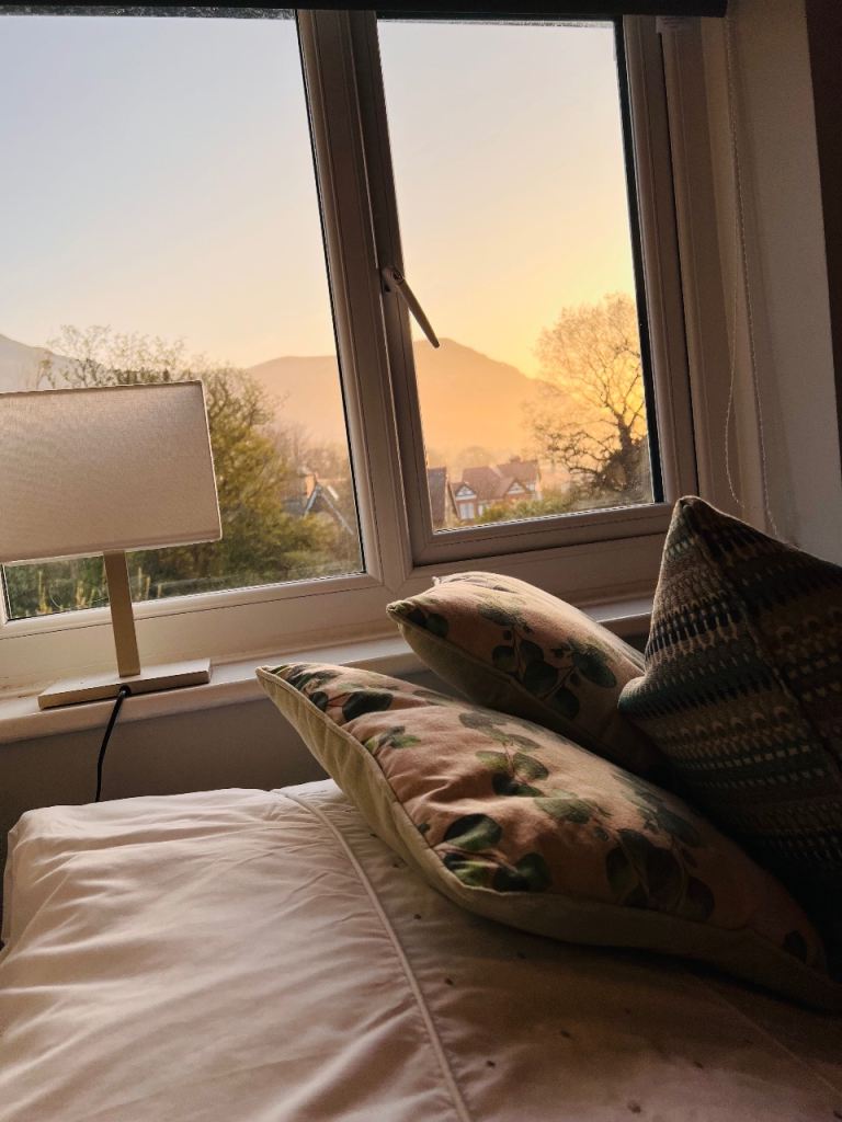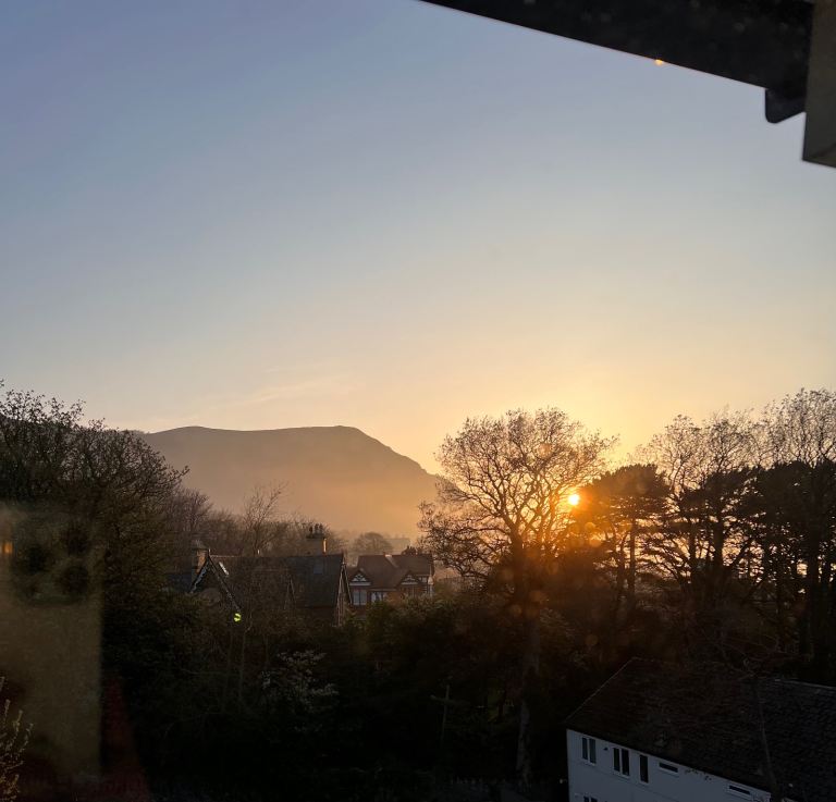 Views of Puffin island and beyond , with views of the mountain from the back.