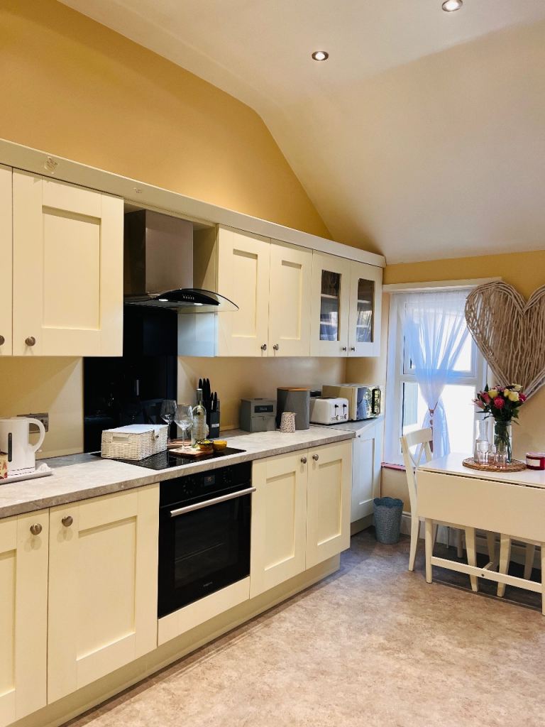 All provided. Including kettle, toaster , microwave.