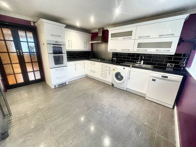 Kitchen with washing machine, f/freezer, dish washer and gas hob / oven
