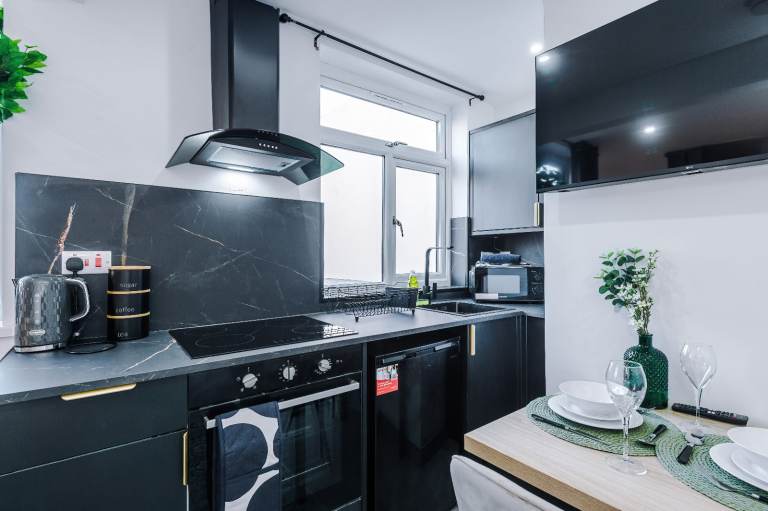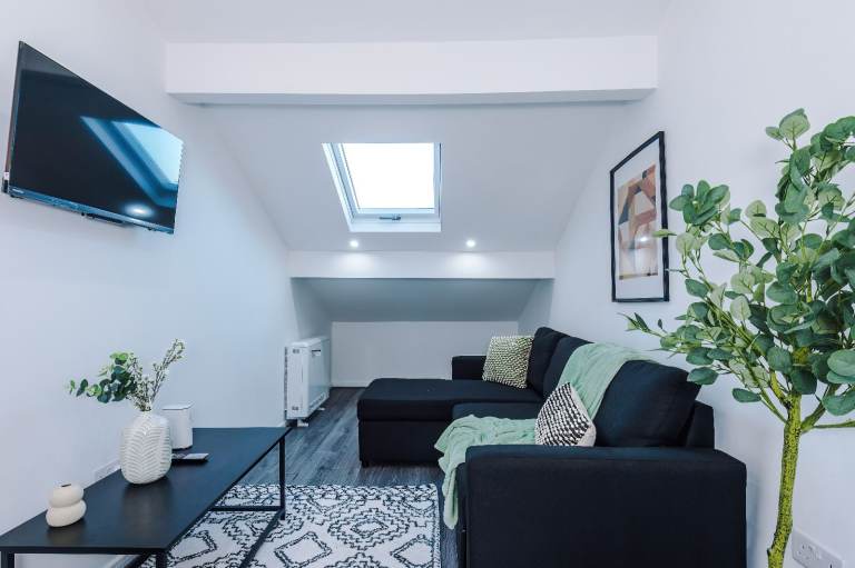 The kitchen has been fitted with gorgeous light grey gloss units, modern worktops and includes fitted oven, hob and cooker hood, washing machine and fridge freezer. A quality back door leads onto the large fully enclosed private rear garden.