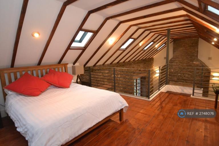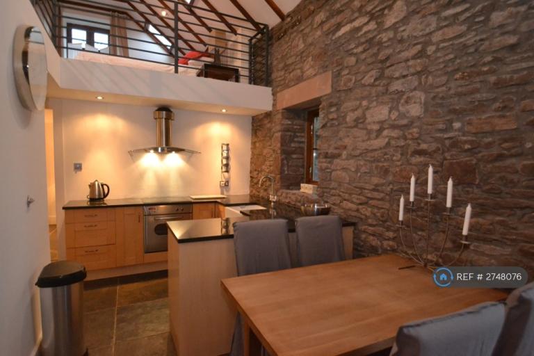 Truly unique and rarely available two bedroom traditional conversion just north of Dunblane. The accommodation is comprised of an open plan lounge, kitchen, dining area with a statement floor to ceiling fire place and wood burning stove. A large double second bedroomwith built in wardrobes, spotlights and a built in window bench with views of the stream and woods. Luxury fitted shower room with a large double shower and a modern white two piece suite. Completing the accommodation is a mezzanine level offering a large master bedroom with original double doors and vaulted ceiling which runs the full length of the property. Warmth is provided by underfloor heating and the property is double glazed throughout. Externally the property benefits from a large private seating area, 2 parking spaces and stream running through the woods.