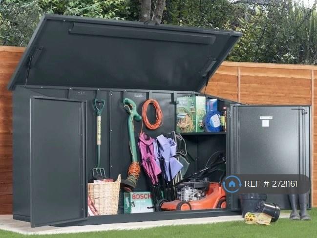 * Private canopied and gated driveway (with Asgard bike locker / garden shed, electric socket and lighting)