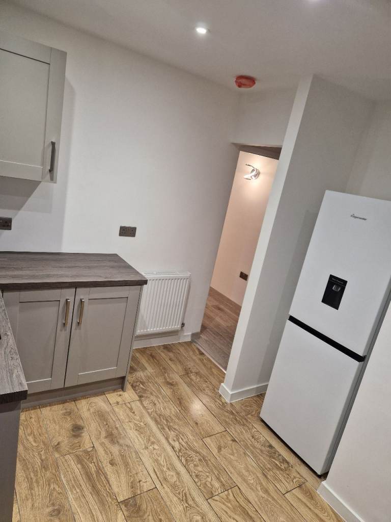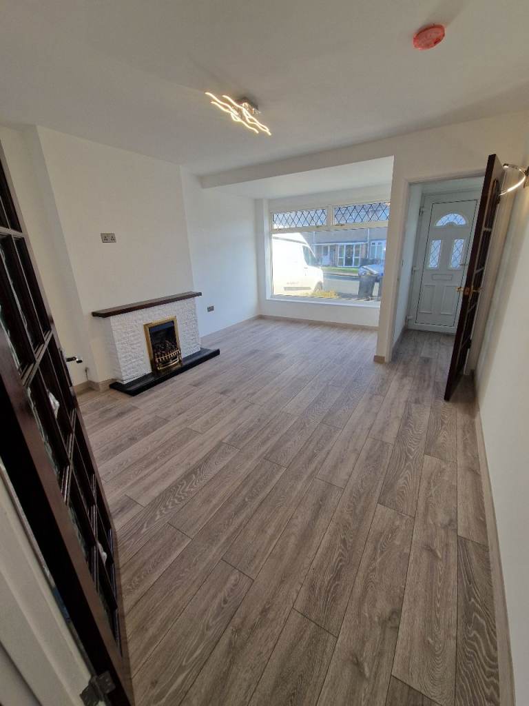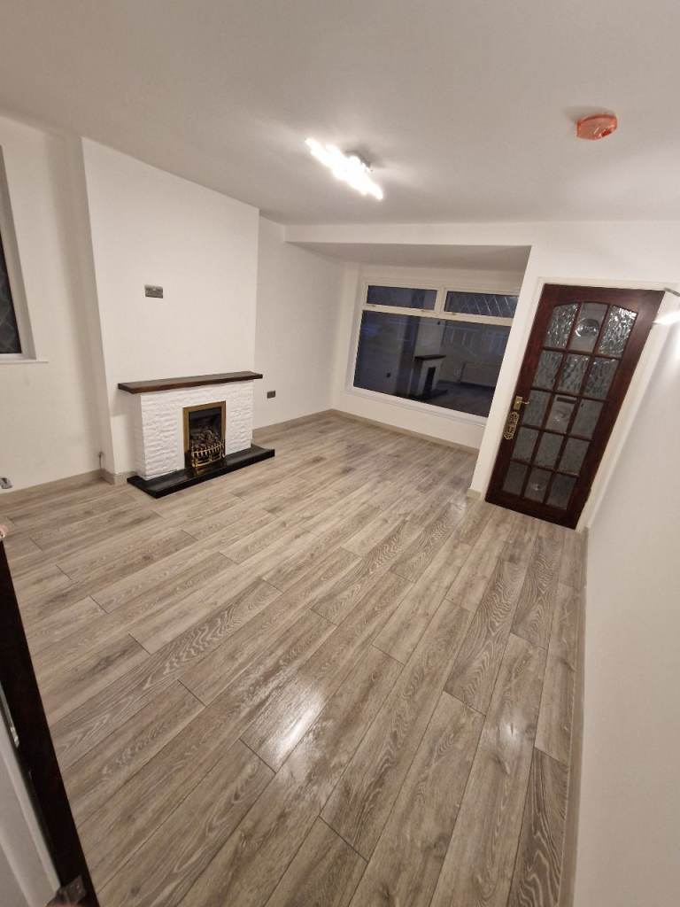 The property offers a spacious living room, modern fitted kitchen with new oven, ceramic hob and extractor, two double bedrooms, and a modern family bathroom. Finished to a high standard with laminated flooring throughout.