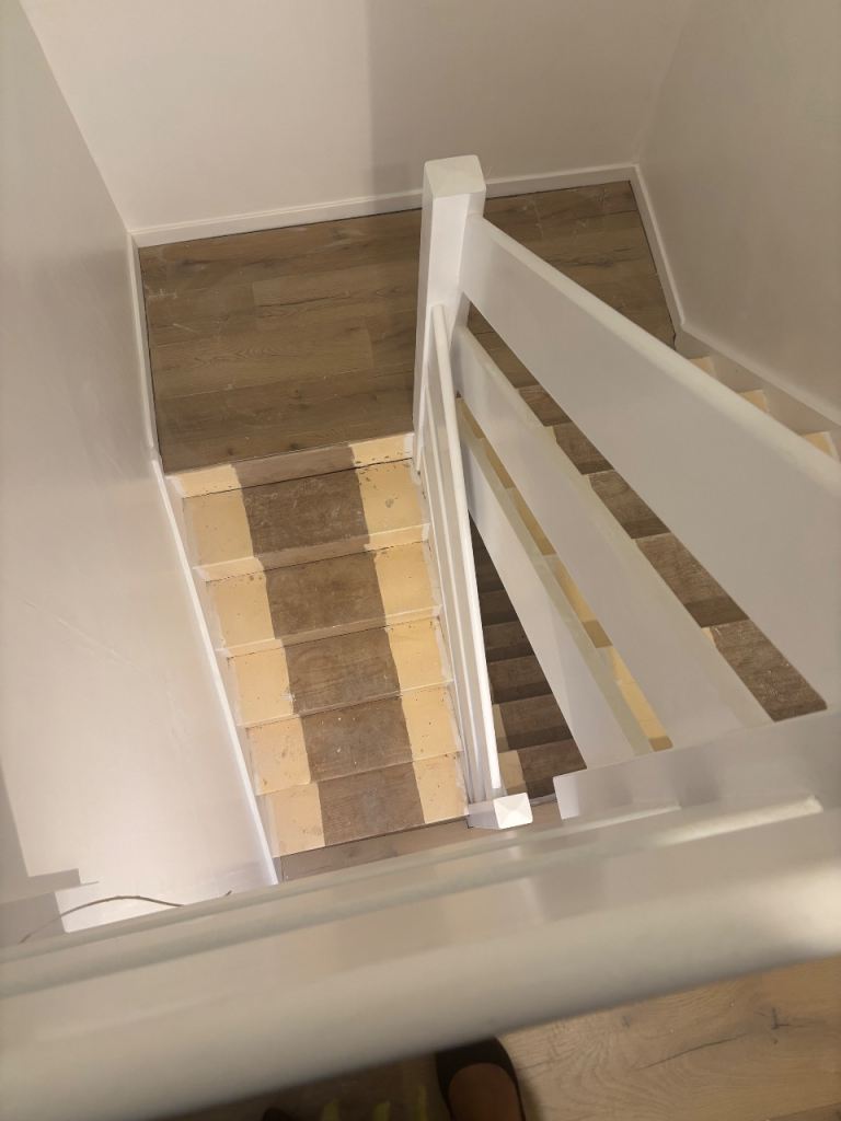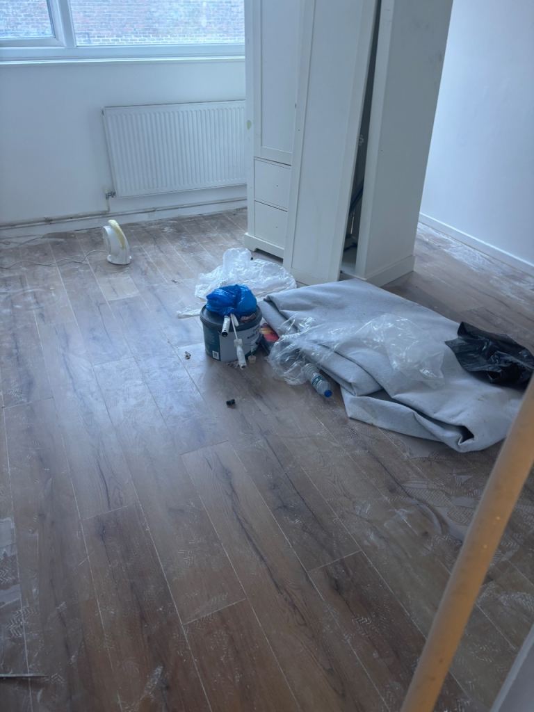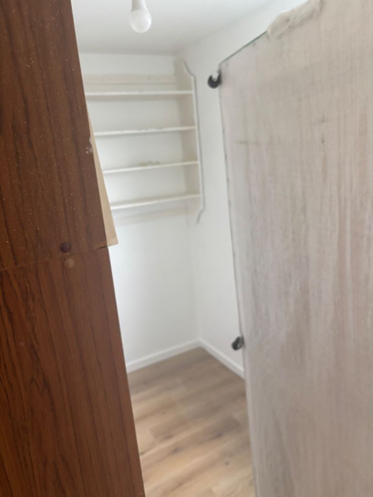 • Laminate flooring, magnolia walls.