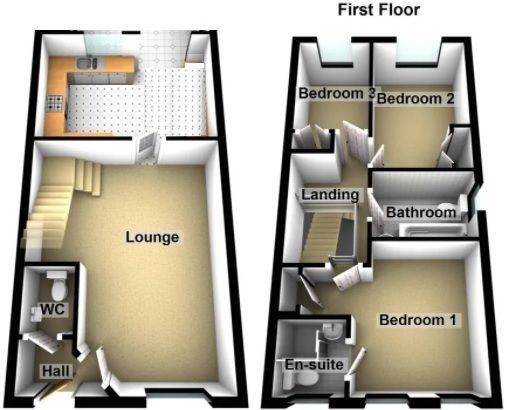 • Bedroom 1 - Freshly Painted (Double 11'9 x 10'3) + En-suite Shower room