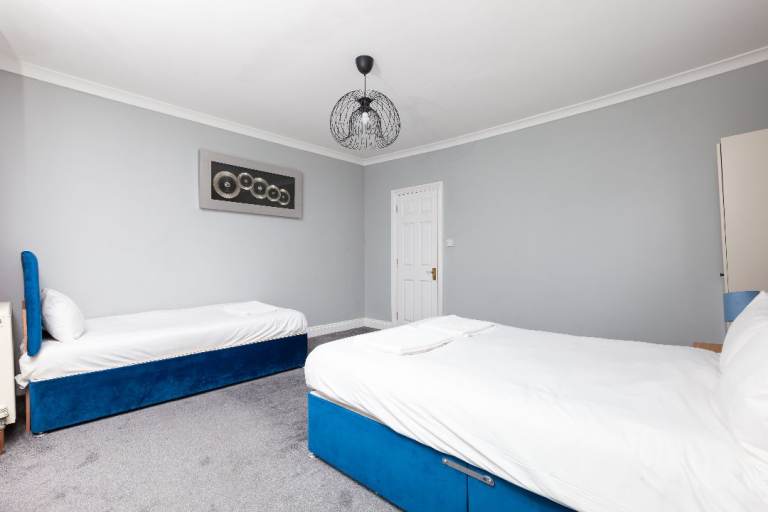 Set over two levels, the property offers generous space and a real “home-from-home” feel. The bright and stylish lounge features beautiful bay windows, comfortable seating, and bold pops of colour, creating a welcoming space to relax or socialise. The fully equipped kitchen makes everyday living easy, while the modern bathroom offers a calm place to unwind.