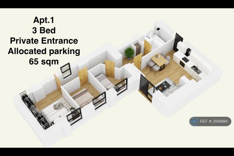 3 Bedroom apartment, spacious apartment with open plan living/dining. Allocated Parking.