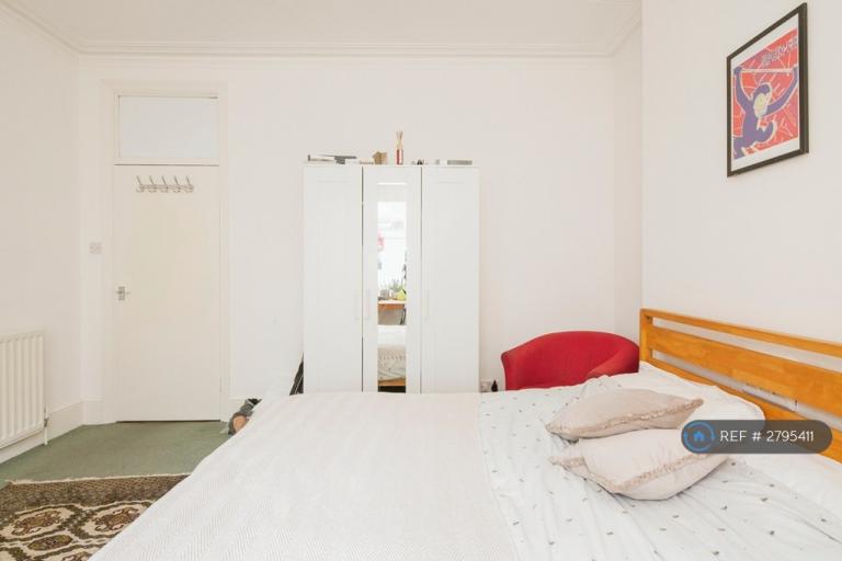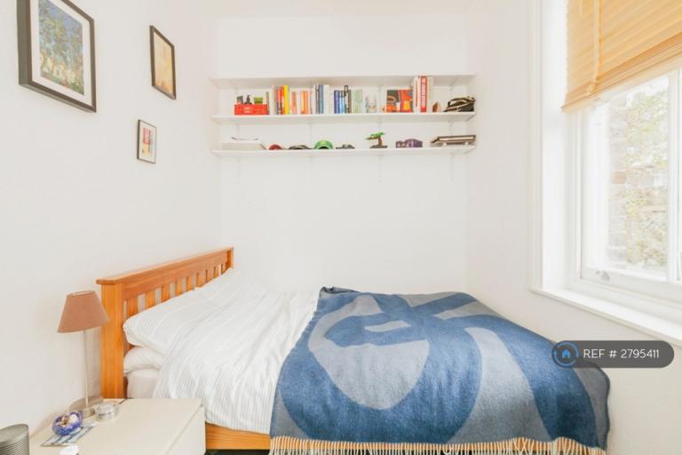 Video entry intercom, hallway, 3 double bedrooms, bathroom, fitted kitchen with dining/living room. Stripped wooden floors, original features, fully furnished. Perfect for 3 professional sharers. 56.3 m2.