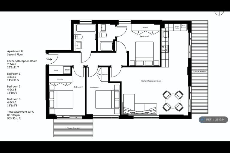 A fantastic 3 bed 2 bath apartment set within this boutique development of just 9 flats, built less than 6 years ago. Apartment is located on the 2nd floor with lift and comprises; open plan kitchen/reception room with floor to ceiling windows opening on to a East-South facing patio, three double bedrooms with fitted wardrobes, luxury bathrooms, entrance hall, underfloor heating, Bosch appliances and beautiful stone worktops throughout. There is a lockable bike storage on ground floor.