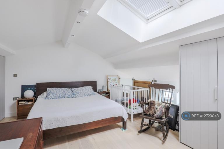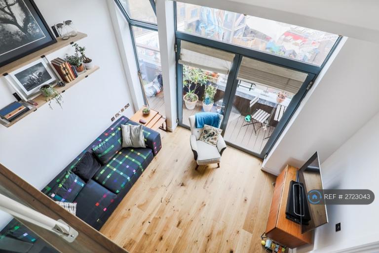 Boasting wonderful bright and spacious rooms, the accommodation comprises a large open-plan kitchen/living area with a full-width balcony to the rear overlooking the River Lea and with views towards the Olympic park and stadium. The master bedroom has been set up at the mezzanine level with skylights and vaulted ceilings. There are two additional bedrooms, one with en suite, which can also be used as a home offices. The apartment is perfect for a professional couple or a small family looking for a property that has space to entertain and allows for working remotely.