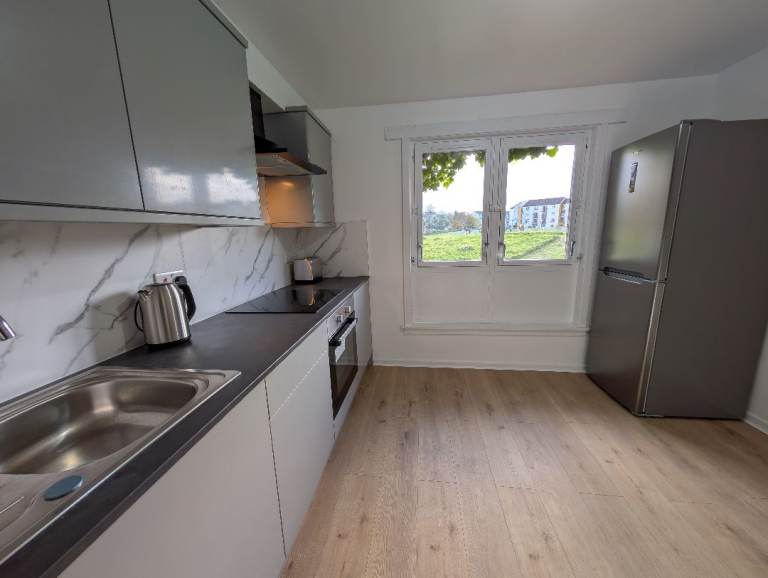 The flat is central with 20 min drive to Edinburgh city center and 10 minute drive to Heriot Watt University. Bus stop is also just outside the property and a lot of buses go to all parts of the city and Wester Hailes train station is 10 min walk away.