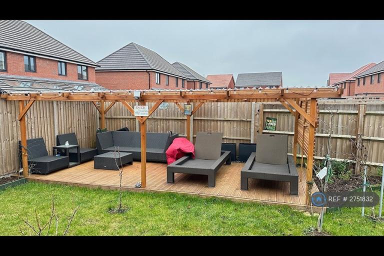This stunning three-bedroom detached new-build home is fully furnished with modern design throughout. It features three generous double bedrooms, ample living space, and driveway parking for multiple cars.