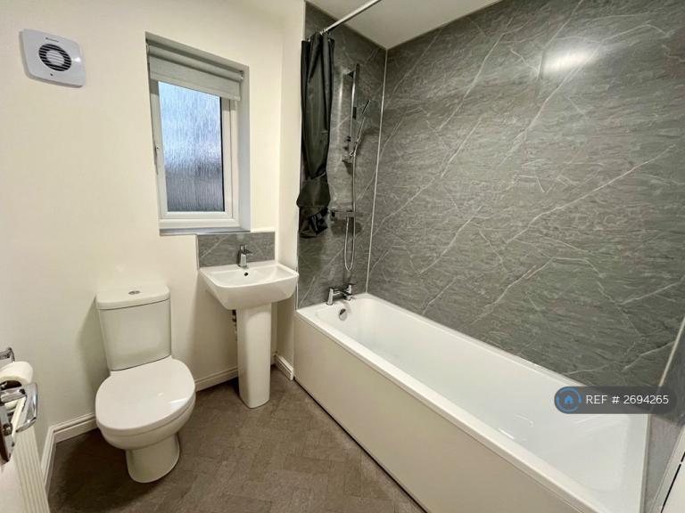 - Brand-New Bathroom: Newly installed modern three-piece bathroom with bath and shower attachment, hand wash basin and WC.